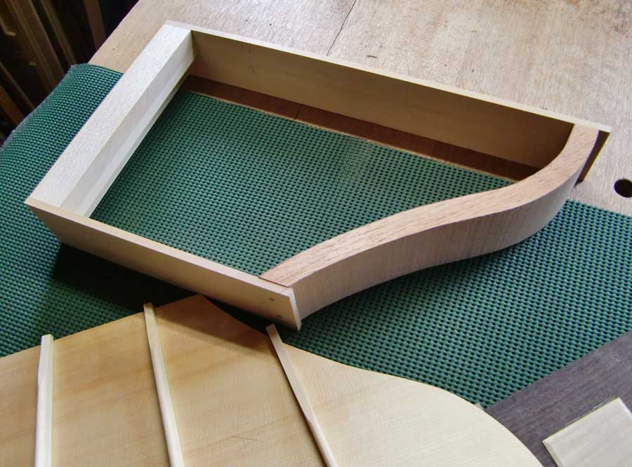 | 表の響板はアルプスのスプルース 裏板はインドネシアのローズウッド 角の柱はマホガニーです。 |