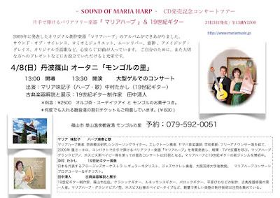 CD発売記念コンサートの準備をしています。3月21日が発売日です。先ず24日(土)に小野市内 マリアハープ教室でお世話になっている長井珈琲倶楽部小野店二階サロンからスタートです。
