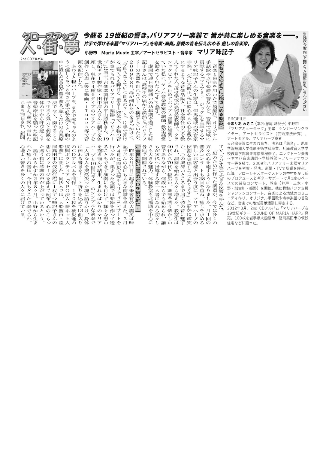 マリアハープ 最近の取材記事など