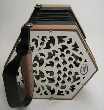 それは、19世紀にできた楽器 "コンサーテイーナ " 、現代のボタンアコーデイオンの祖先です。後々に、鍵盤がつき、鍵盤アコーデイオンとなって行くのです。