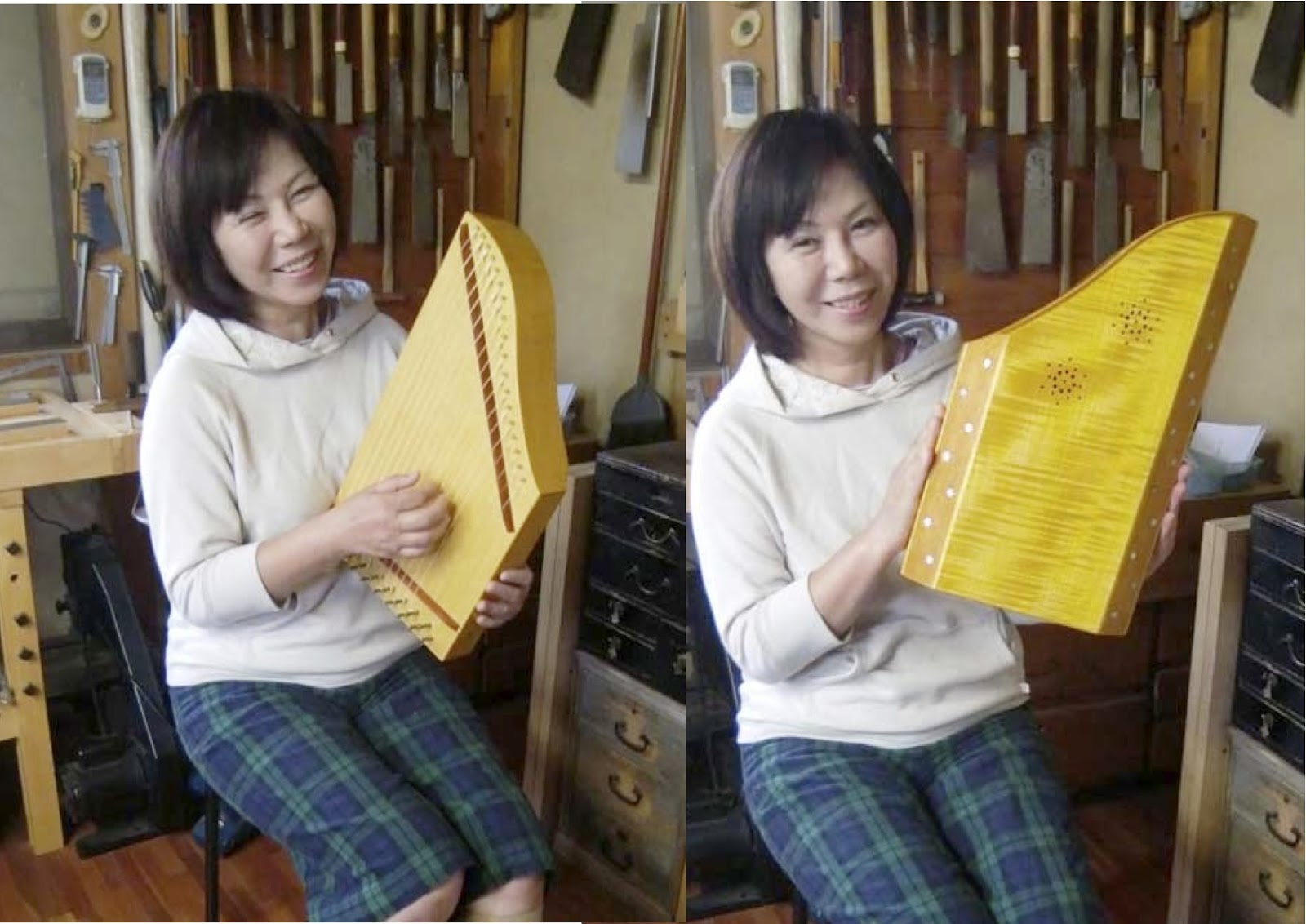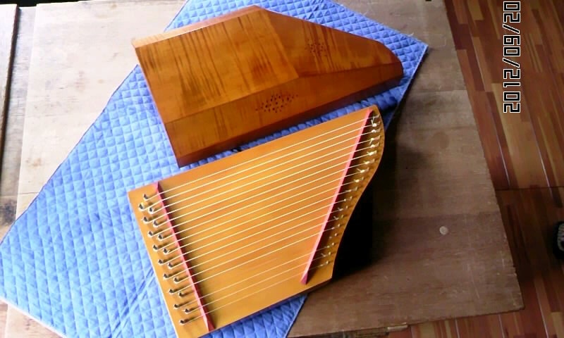 この秋から10台限定制作予定です。2台めのハープに、お子さん、お孫さんへのプレゼントに、携帯用に、熱化学処理済み木材でできたマリアハープを、お求めやすい価格で創っていただいています。