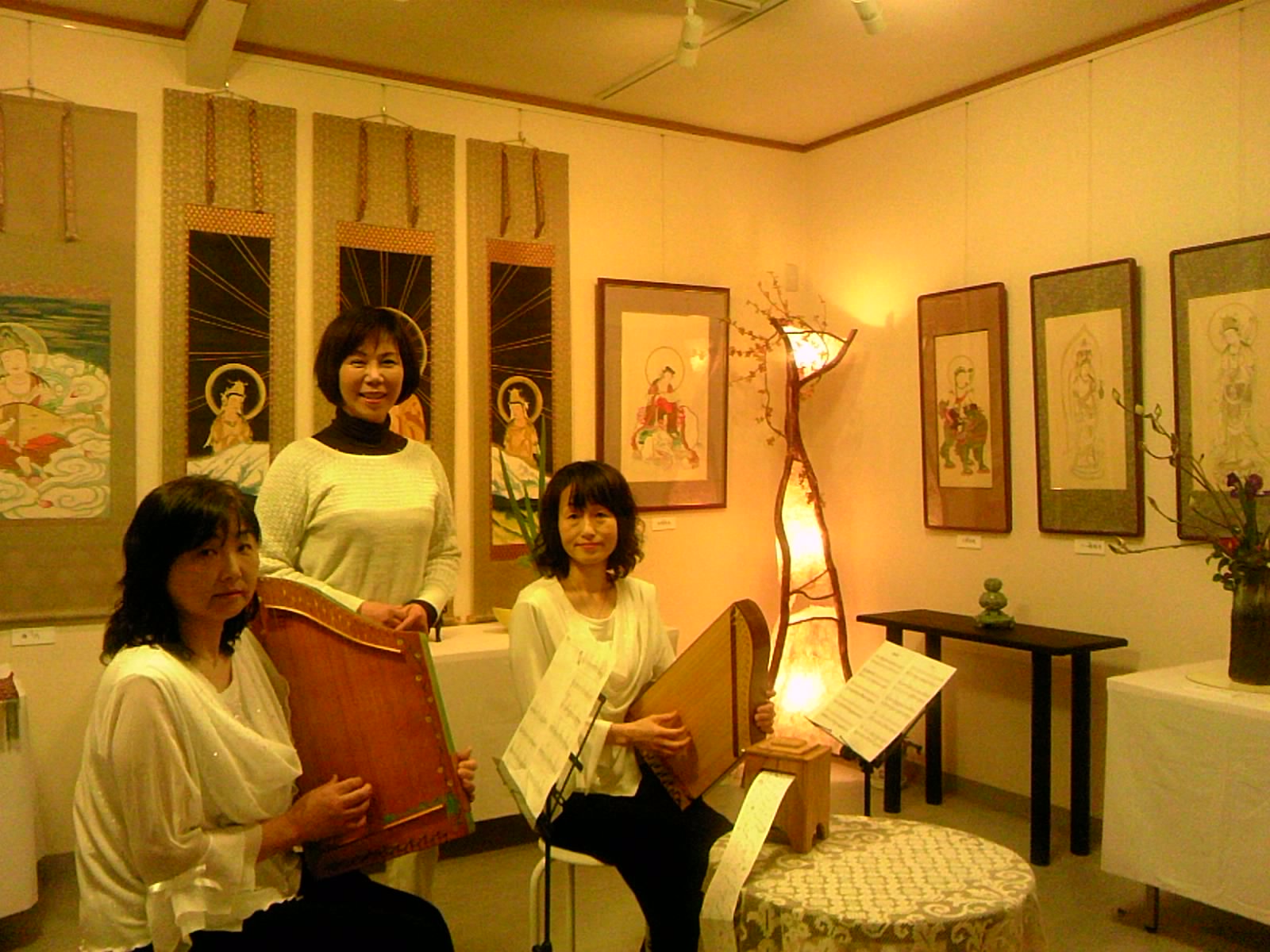 3/24東日本大震災鎮魂仏画展でのマリアハープ演奏
