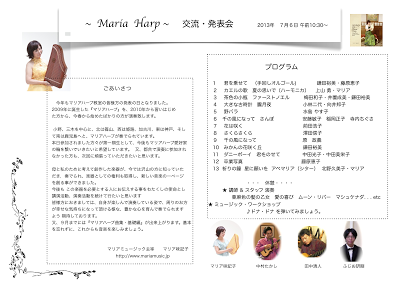 7/6はマリアハープ教室の交流・発表会。