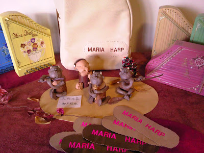 そのテスト合格を目指している人たちのケースには『MARIA HARP』のロゴ刺繍が入ります。70才以上の方はテスト申し込んだ時点で、若い方はステップ3に合格すると刺繍を付けることになります、、