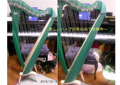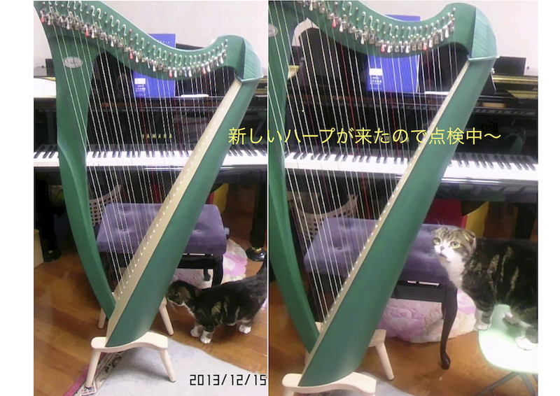 マリアハープの伴奏に、低音が欲しかったので サルビイハープ社のミイアを購入しました。明るいグリーンです。ハーピストの摩寿意英子さんの紹介で、銀座十字屋さんから届けていただきました。