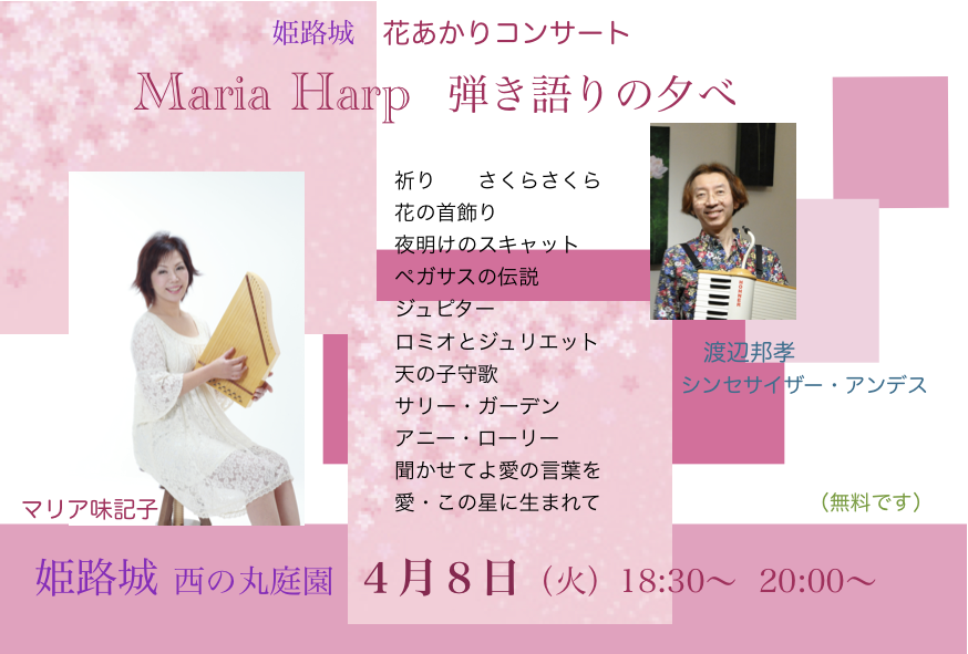 4/8 姫路城 夜桜会コンサート 西の丸庭園18:30~ 20:00~