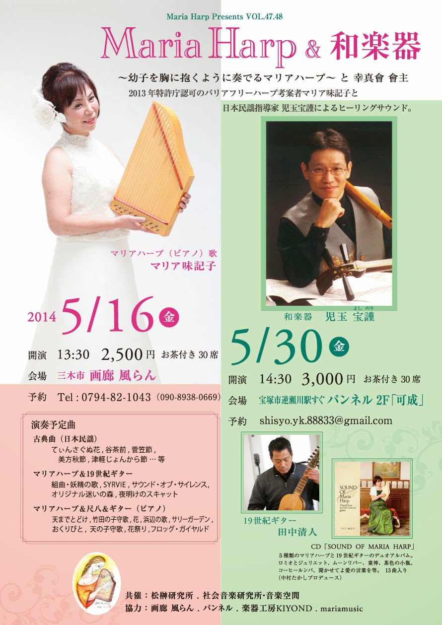 5/24 (土)神戸市ロワールコンサート15:00~ (マリアハープは出演しません)
