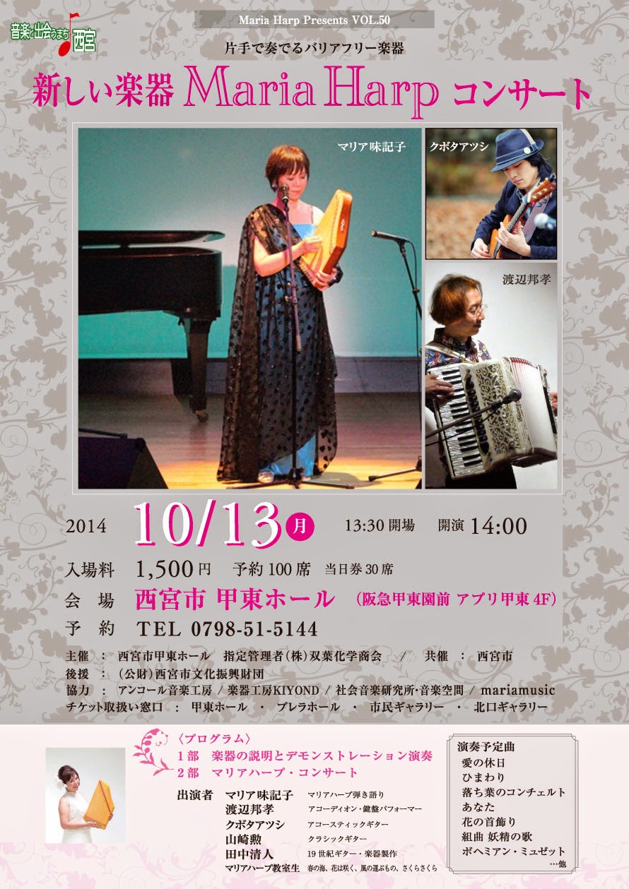 10月13日 西宮市甲東ホール「新しい楽器MariaHarpコンサート」