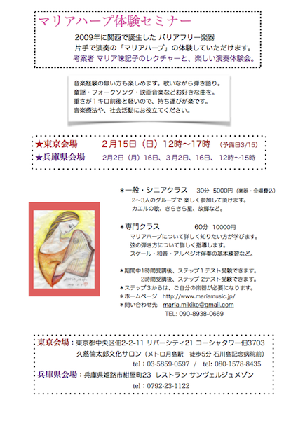 *マリアハープ奏者・マリアハープ考案者・シンガーsongライター・マリア味記子のblog(社会音楽研究所・音楽空間)