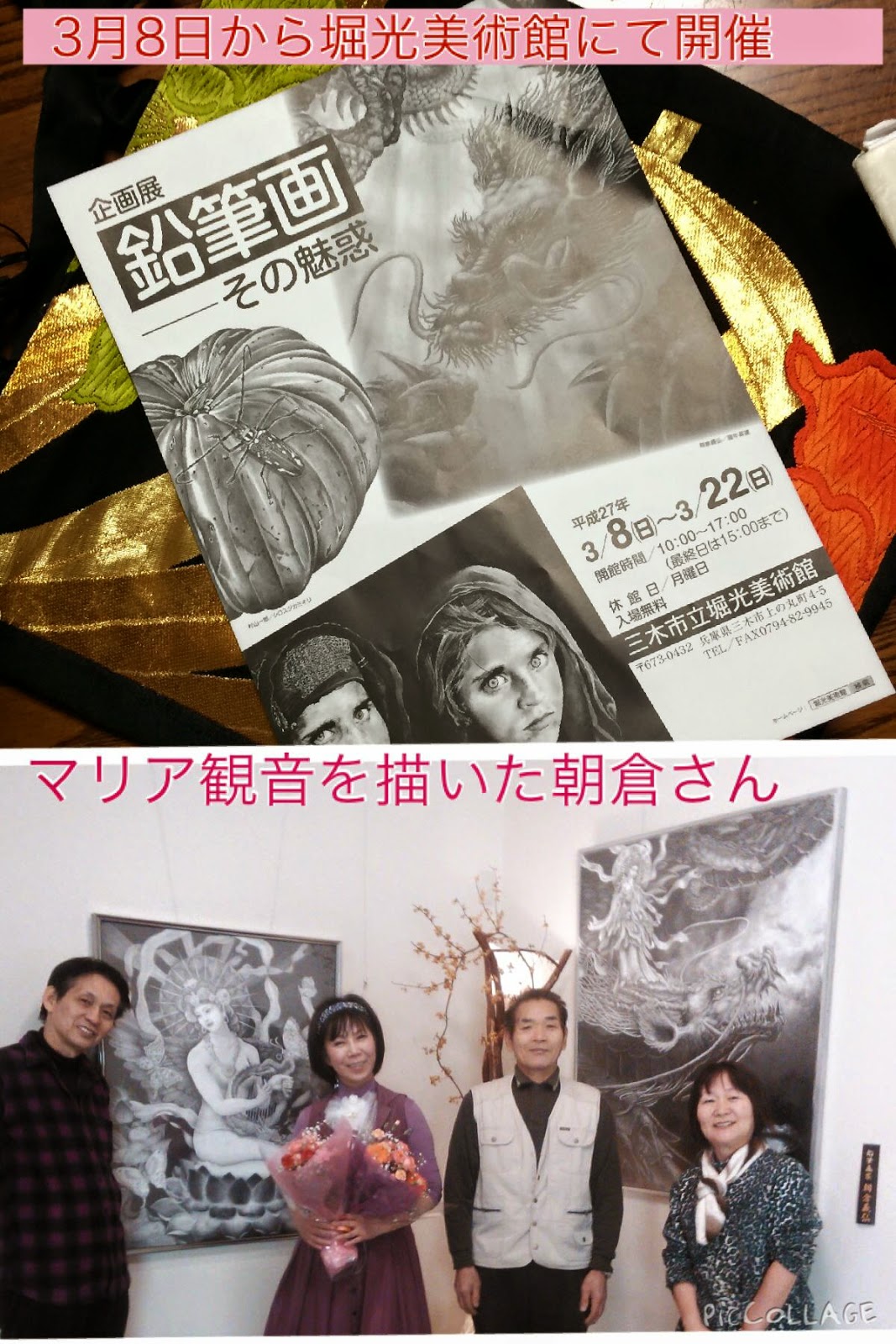 その、龍の鉛筆画作品展が、三木市 掘光美術館で8日から始まります。鉛筆だけで描く100号の想像画の世界をお楽しみください。今回のテーマは、原発・平和だと聞いています。