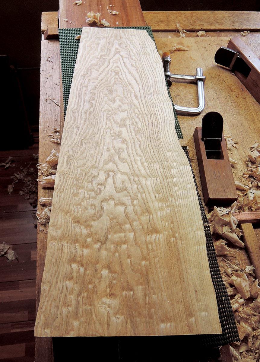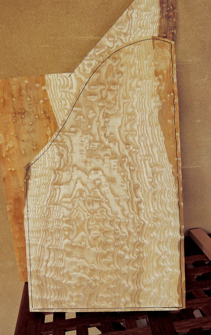 10年先にも負担無く弾けるように、弦は緩めで響きが大きいのが良いと希望された生徒さんの楽器は、木目がとても鮮やかに浮き出て、まるで鮎が跳ねているようにも見える材木で製作が始まっています。