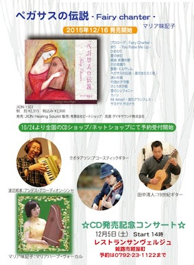 写真にしようかと思っていたのですが・・・今回のCD、マリアハープを創る以前のオリジナル曲が2曲含まれています。20年近くの過去 兵庫教育大学の指揮法研究室にリカレント入学していた頃、兵庫レディースマラソンより依頼されて創った曲、西脇市地球科学館のテーマ曲として進呈した曲。