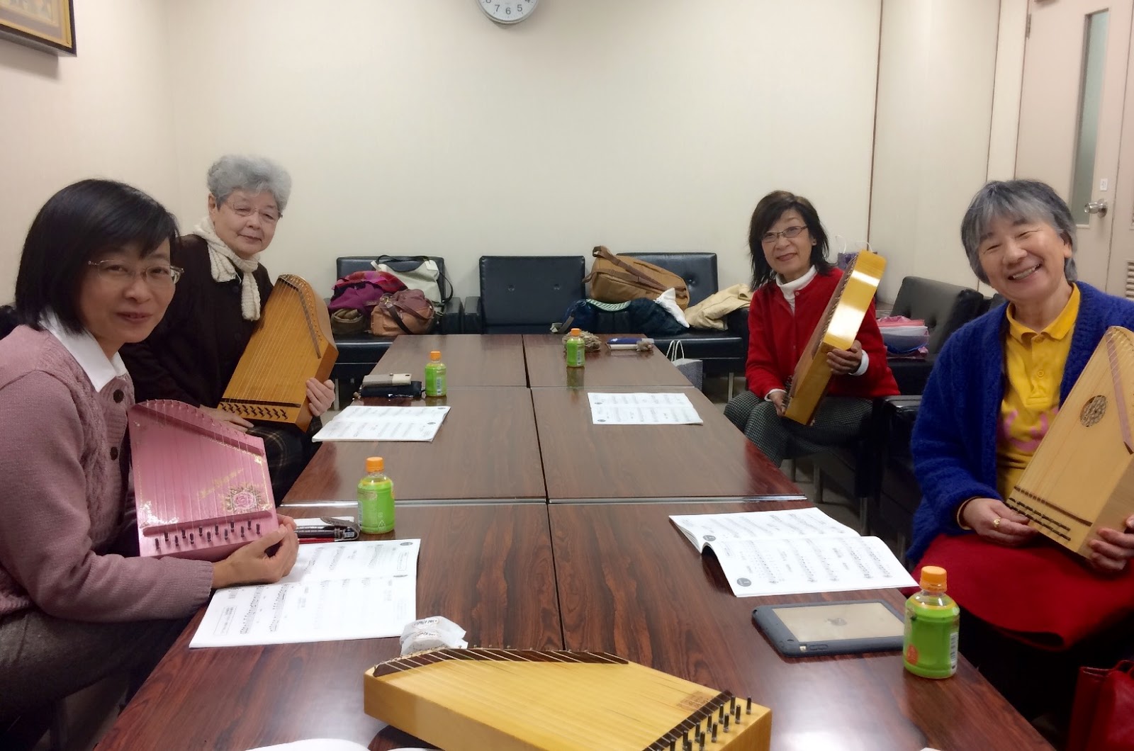 今日と明日、マリアハープ教室集中レッスンを姫路で行っています。前回に続いてレッスン3に進む方2名、初めての受講で検定1級を受ける方2名、が参加します。アドバイザーとして5級合格の梅田さん、小川さんがお手伝いくださいます。