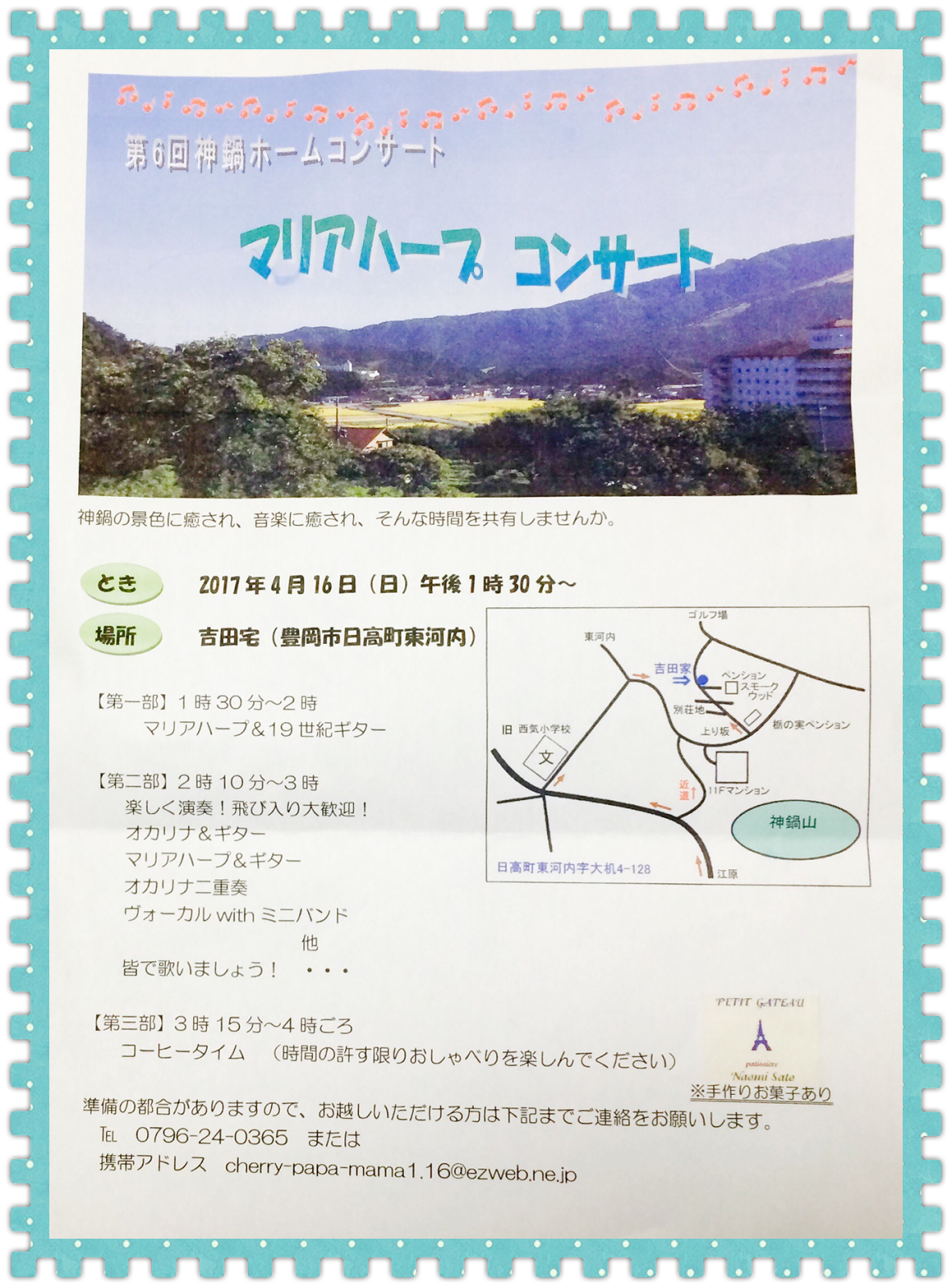 4月29日 篠山市、とっておきの音楽祭に、マリアハープ・アンサンブルで出演。