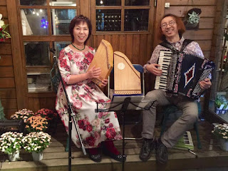 10月1日、篠山教室 カフェ・ひとやすみでのコンサート、会場いっぱいのお客様でした。半分がマリアハープ生徒さん、 遠く篠山市まで来て下さいました。あと半数の方は、マリアハープ初対面の方々で、この日は生徒さんの様々な楽器を見ていただけよかったです!初めてのコンサート、オーナーさんいろいろご苦労様でした。渡辺邦孝さんには演奏、ワークショップお世話になり、生徒さん方に新しい刺激を与えていただきパワーが湧いてきています! ギター田中清人さん、マンドリンの吉田先生もご参加ありがとうございます。ビデオ撮影の三金さんもお疲れ様でした。