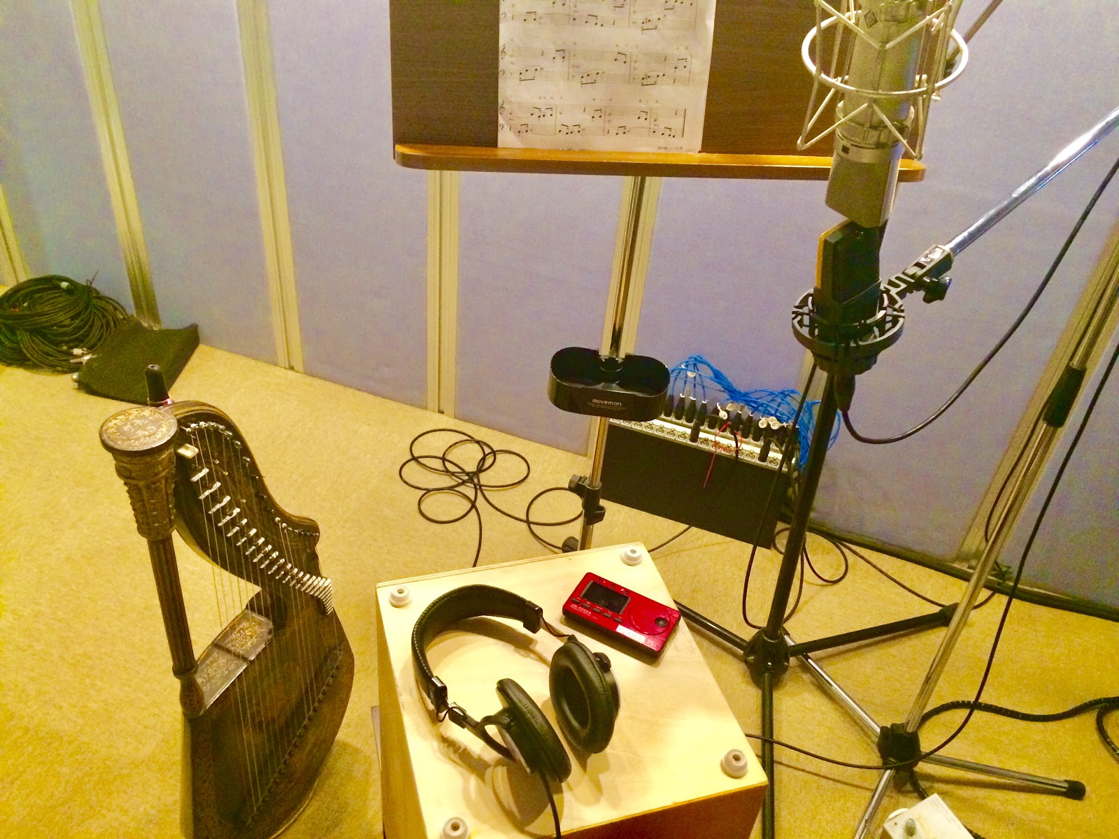 12月8日、毎回CD制作でお世話になっているビートショップスタジオでディタルハープのテスト録音でした。ハードケースがまだ出来ていないので、ギターのソフトケースに入れてスカーフでぐるぐる巻きにして電車で行きました。